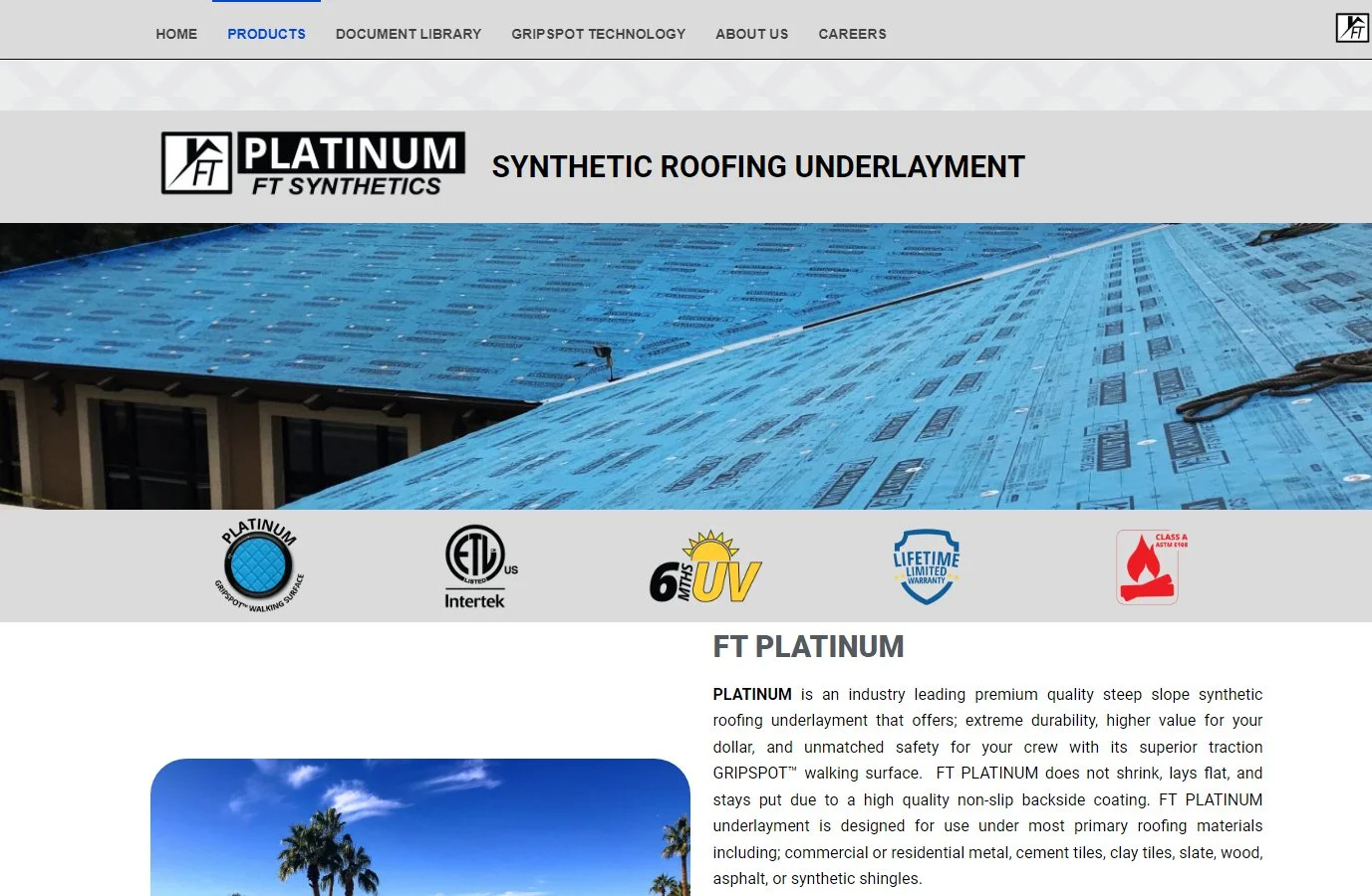 FT Synthetics – part of GAF, North America’s largest roofing and waterproofing manufacturer- is a fully integrated manufacturer of coated woven fabrics, with a dedicated focus of developing industry-leading new and unique underlayment products designed for the steep slope roofing industry. The company designs high performance, consistent quality products that offer one of the safest walking surfaces available in the industry.